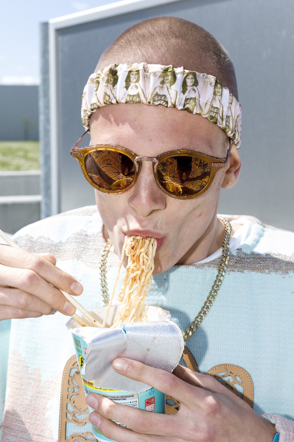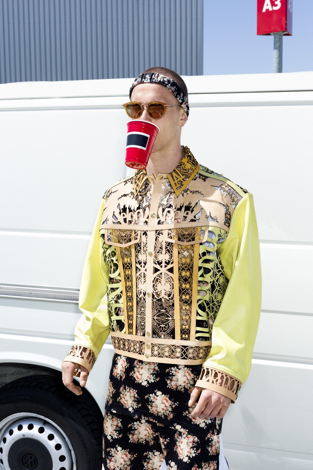 DHL: ” I developed some prints with American-based painter Brian Kokoska. I decided to work with Brian because we had some sort of creative connection from the minute we met. For ‘True Believer’ I wanted to design some accessories too, so I contacted Belgian brand theo to design sunglasses for the collection. Although the people really liked the sunglasses, theo decided that it wasn’t a good move to put sunglasses on the market. That was a bit of a bummer but my next collection will certainly include sunglasses. For one of my previous collections I had already designed sunglasses and it’s an accessory that I enjoy making.”