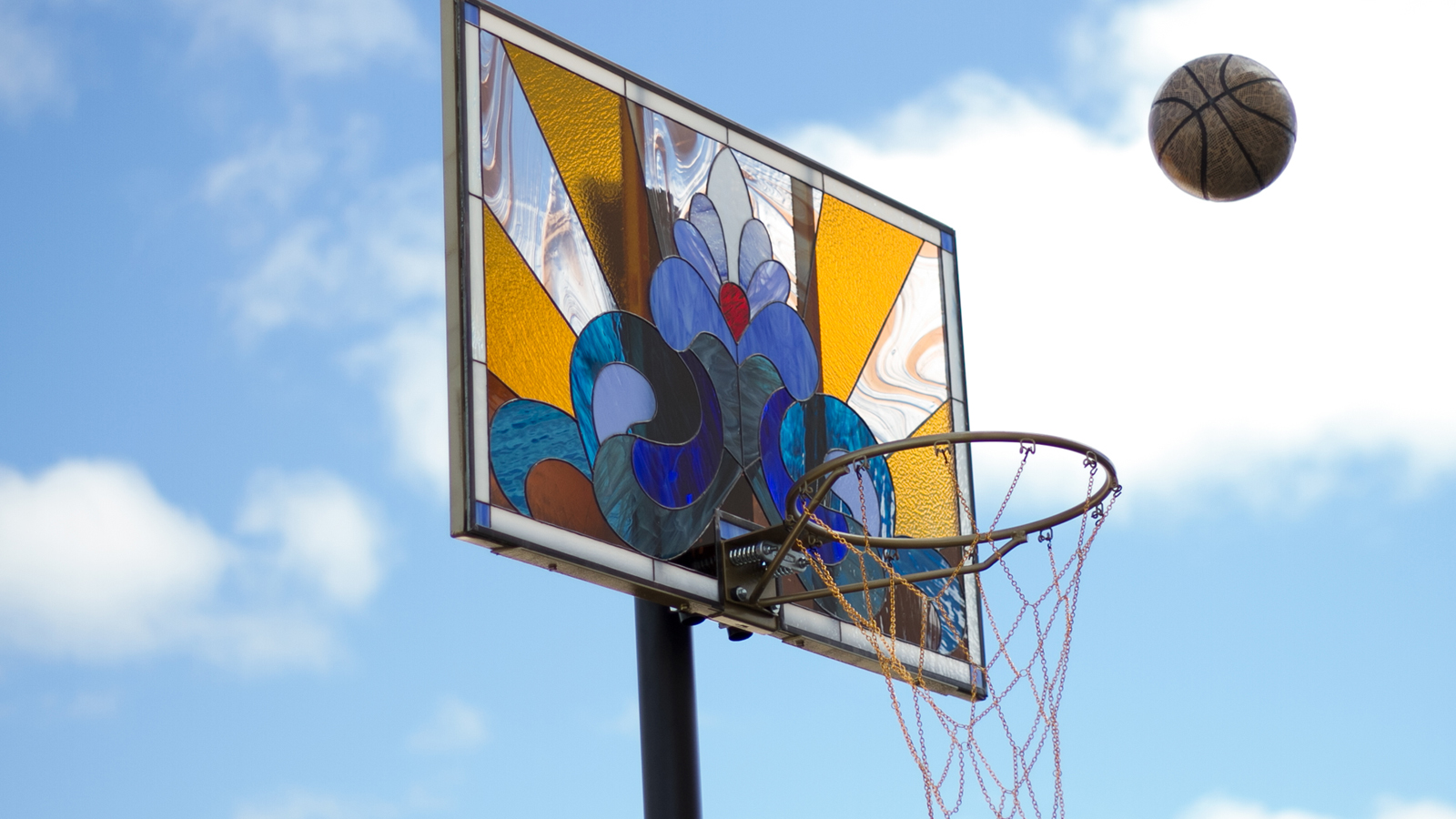 For a lot of people basketball is their religion. If you are one of those fanatics who worships the game, then these stained glass basketball backboards might be right up your alley. Like stained glass windows that depict religious icons in churches and cathedrals, artist Victor Solomon places breathtaking and beautiful stained glass windows in place of basketball backboards in his series cleverly titled Literally Balling. These are not likely to be used at any court that you’ve ever seen, as they are likely to shatter into a thousand pieces. Each piece is ornamented in luxurious materials and gems, including the basketball goal’s net and rim. Check out some of our favourites below.